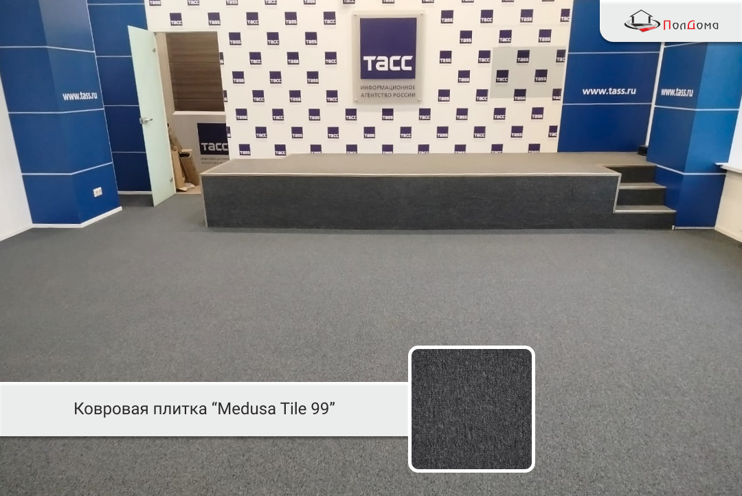 Проект был выполнен точно в срок, без остановки рабочего процесса. Ковровая плитка Medusa Tile 99 показала себя идеальным выбором для офисного пространства: износостойкая, практичная и стильная. Благодаря правильному подбору материала и профессиональной укладке от «ПолДома» офис стал не просто местом работы, а пространством, где хочется находиться каждый день.