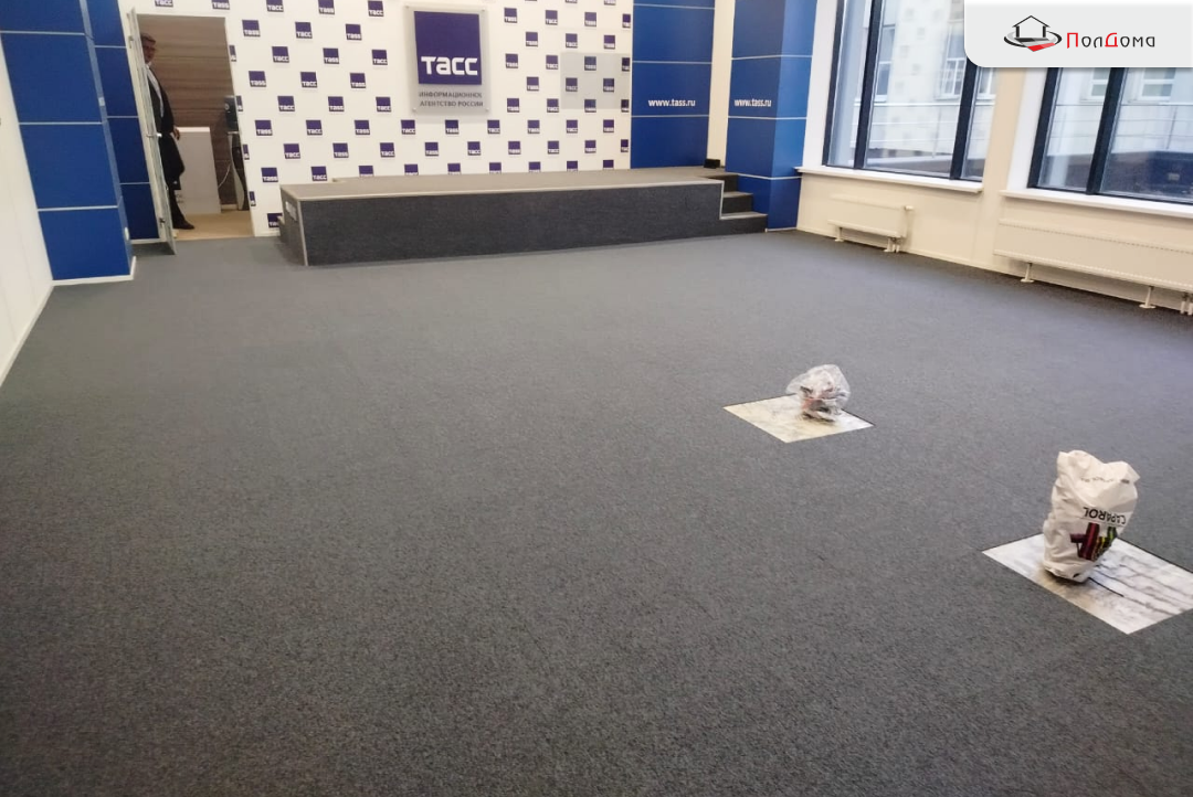 Укладка ковровой плитки в офисе ИТАР ТАСС