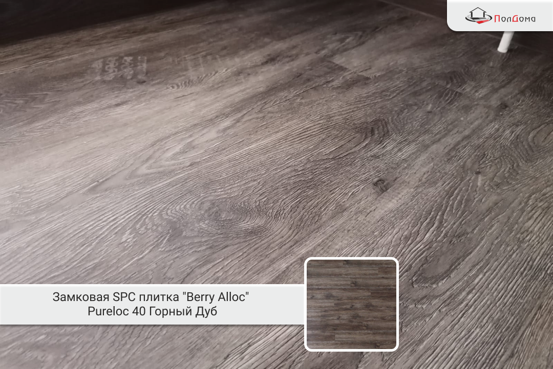 Выбор пал на кварц-виниловую плитку (SPC) Berry Alloc Pureloc 40 из коллекции «Горный Дуб». Почему именно она? Потому что в офисе, где постоянно передвигают образцы, завозят тяжёлую технику и ходят заказчики, обычный ламинат сдался бы через полгода. А это покрытие — настоящий крепкий орешек.