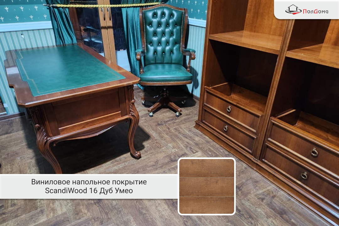 ScandiWood 16 — кварц-виниловое покрытие с декоративным слоем под натуральный дуб. Оно полностью влагостойкое, выдерживает высокие нагрузки и устойчиво к механическим повреждениям и истиранию. Фактурная поверхность снижает скольжение, а встроенная подложка гасит шум и делает шаги мягче.