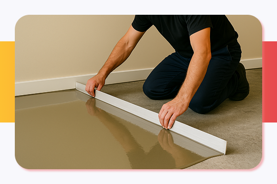 Профессиональное устройство стяжки — это диагностика основания, грунтование и гидроизоляция, установка демпферной ленты и маяков, точная лазерная нивелировка. Мы подбираем состав (цементно-песчаный/полусухой), при необходимости выполняем армирование фиброй или сеткой, обеспечиваем равномерную укладку, уплотнение и затирку без применения ровнителя. Контролируем технологическую выдержку и остаточную влажность перед настилом покрытия. В итоге вы получаете монолитную, прочную стяжку без трещин и отслоений, соответствующую требованиям по ровности и готовую к дальнейшей отделке.